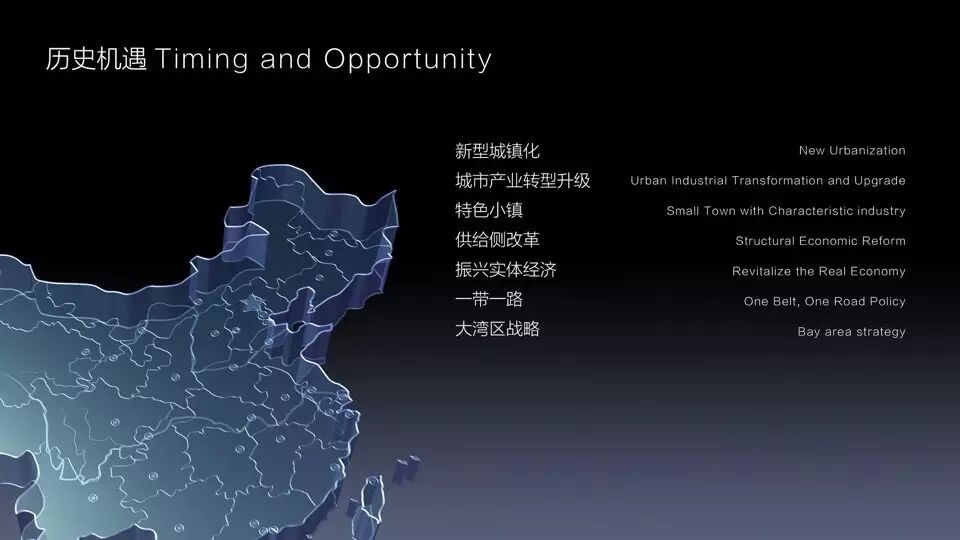 回顾五个特征,我们认为其实时代在做未来小镇的时候,我们的出发点是产业到底需要什么?目前产业的问题是什么?我们怎么去解决这些问题?怎么把一些国外市场已经极度萎靡的行业重新整合落地到我们以珠三角为核心的这些未来小镇的布局当中去?这些都是我们时代可以去做的,也是可以协同在座的各位企业家以及政府共同来做的。
